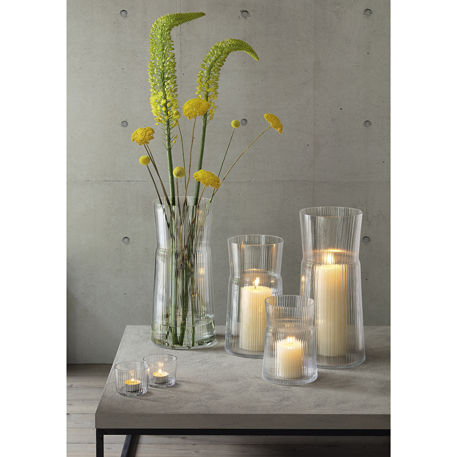 Ваза Gio Line гармонично дополнит современный интерьер гостиной или спальни. Емкость из прозрачного стекла идеально подходит для создания композиций из живых, искусственных цветов, высушенных трав и веток. Также аксессуар можно использовать в качестве оригинального подсвечника. В комплект входит свеча.