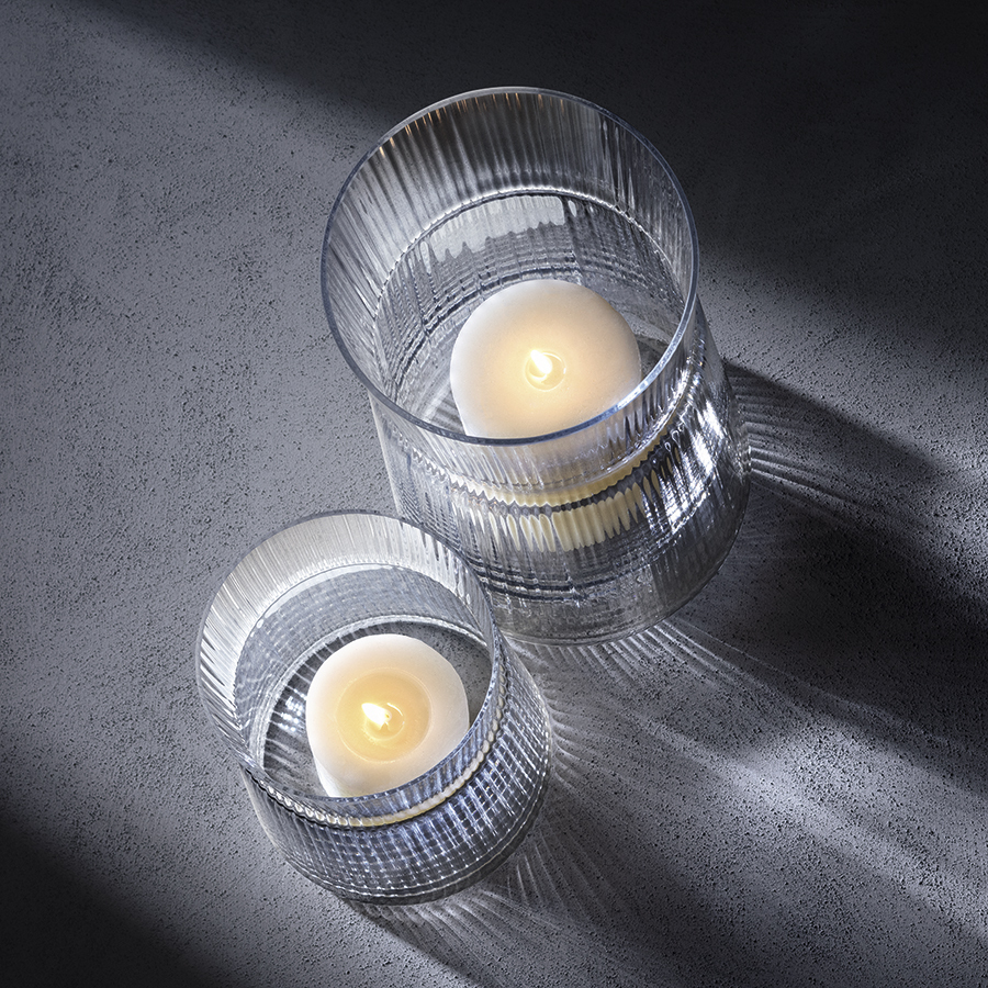 Gio Line – оригинальная коллекция аксессуаров для сервировки стола и декора кухни, столовой или гостиной. Емкости для хранения, графины, бутылки для масла и уксуса, подсвечники, вазы, тумблеры и стаканы выполнены в лаконичном дизайне. Плиссированная текстура выдувного стекла создает «воздушный» образ, а солнечные лучи отражаются и преломляются на его гранях.