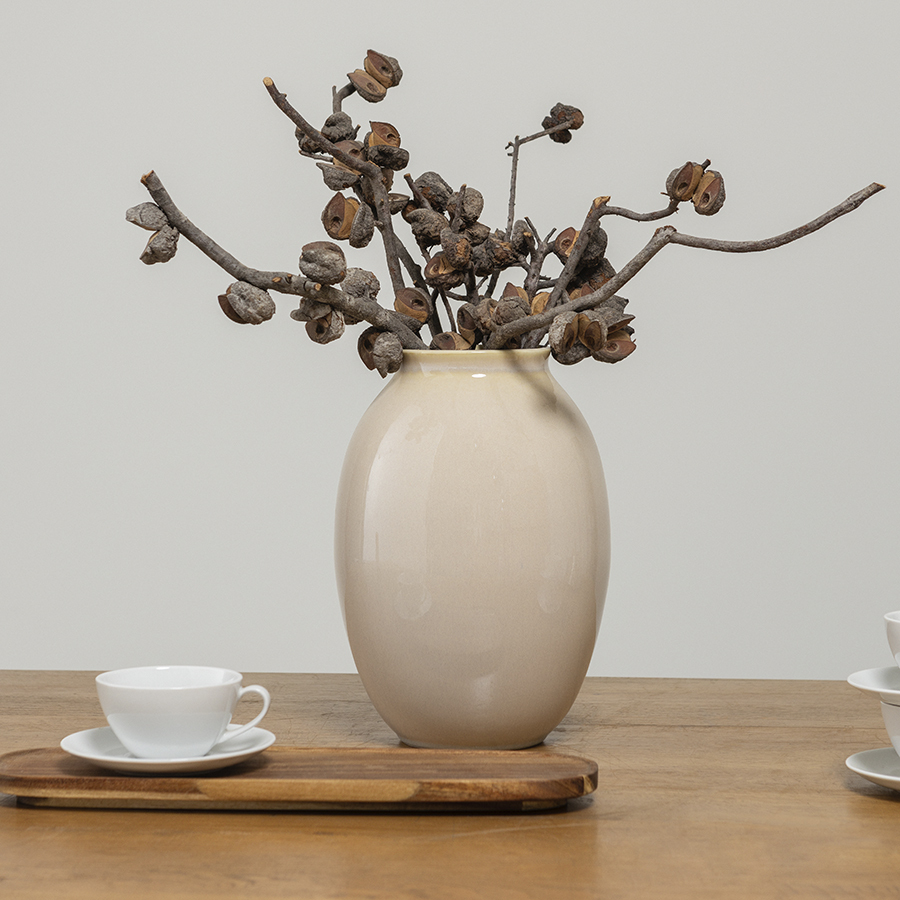 Ваза Nature изящной обтекаемой формы станет прекрасным дополнением классического, современного или эклектичного интерьера. Емкость из натурального фарфора отличается прекрасными эксплуатационными характеристиками, такими как износостойкость и долговечность, а также изысканным внешним видом. Покрытие глазурью защищает поверхность от повреждений, выгорания и воздействия влаги, придает изделию деликатный блеск. Такая ваза отлично смотрится на столе, декоративной тумбе, стеллаже или полке.