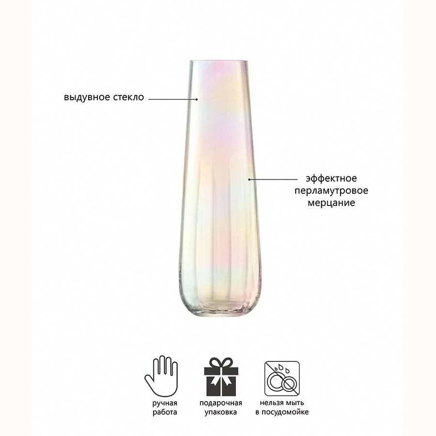 Ваза Pearl – это истинная жемчужина, которая украсит коллекцию декоративных аксессуаров для оформления комнат в современном стиле. Изделие изготовлено из абсолютно прозрачного стекла с легкой искринкой, представлено в элегантном в своей простоте дизайне. В этой вазе одинаково эффектно будет смотреться шикарный букет роз и охапка полевых цветов. Материалы: выдувное стекло. Мелкие пузырьки внутри выдувного стекла не являются браком (круглые пузырьки < 3 мм и овальные пузырьки < 5 мм): это допустимые индивидуальные особенности изделий, изготовленных вручную. Размеры: 36 см.