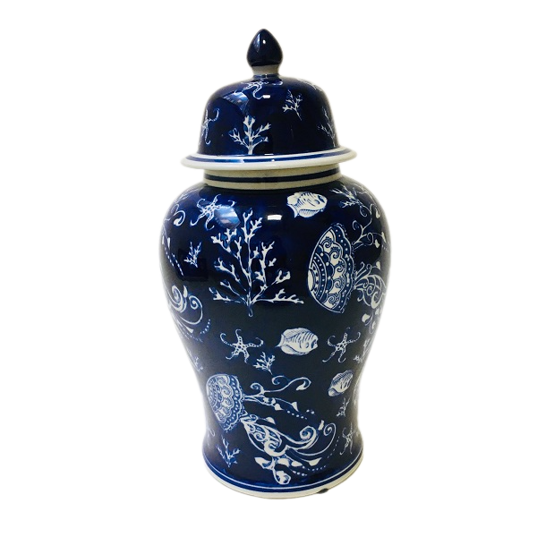 Ваза с крышкой синяя, фарфор, 46 см