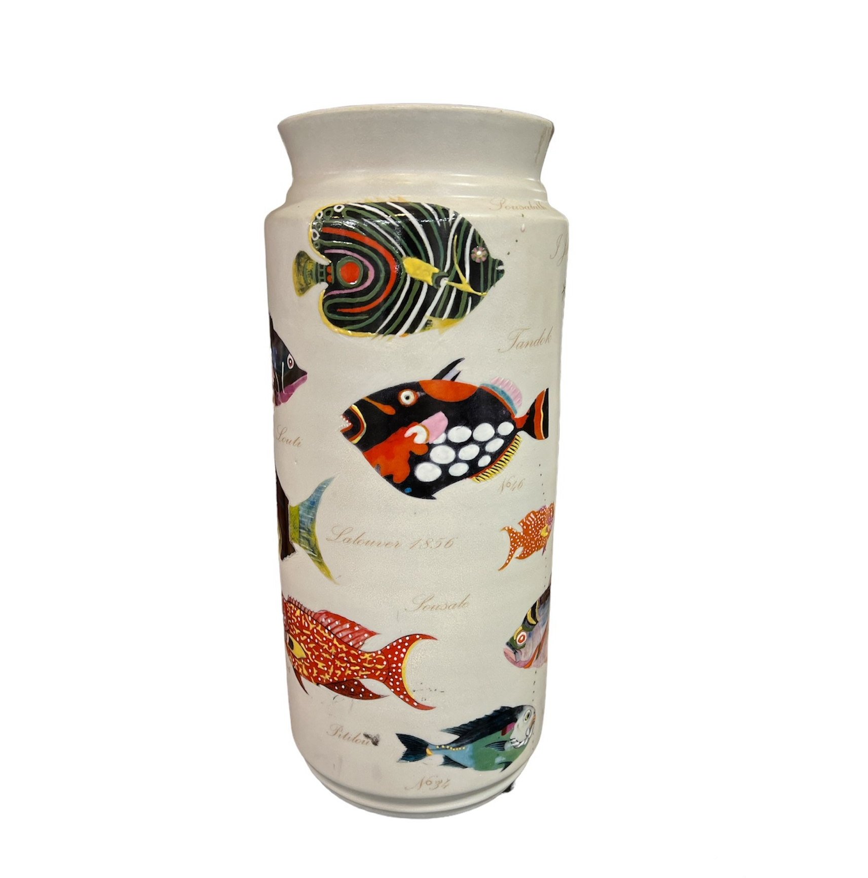 Стаи рыб на белом фоне украшают эту вазу и создают художественный образ. Ваза создана с исключительным вкусом, чётко прорисована каждая деталь.