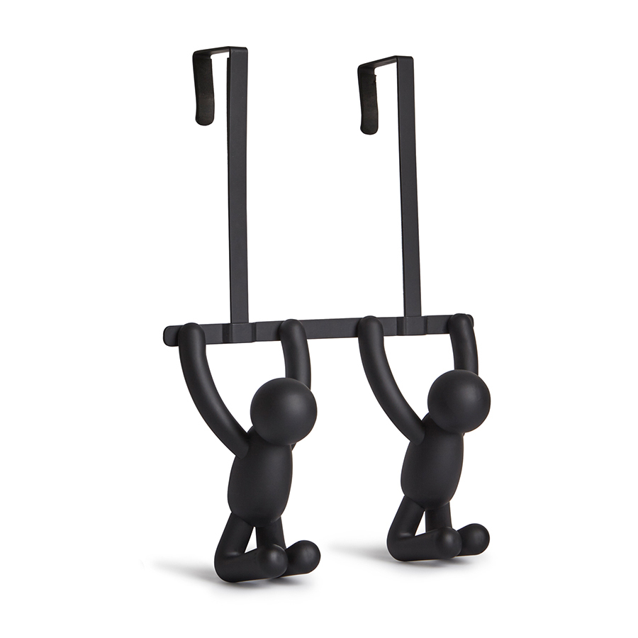 Надверная вешалка Buddy – оригинальное приспособление для хранения одежды от торговой марки Umbra. Авторами дизайна выступили Alan Wisniewski и Wesley Chau. Основание выполнено из сверхпрочного пластика, устойчивого к износу и воздействию влаги. Конструкция оснащена надежной панелью для удобного крепления к дверям, не требуя особых физических усилий, вкручивания дюбелей или использования клея. Металлические крючки в виде забавных человечков способны выдерживать нагрузку до 2,3 кг. Материал: пластик, металл. Размеры: 31,8x21,6x10,8 см.