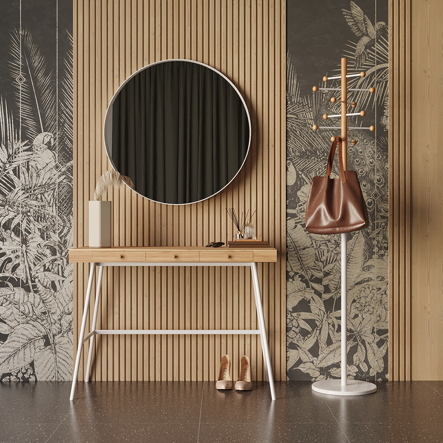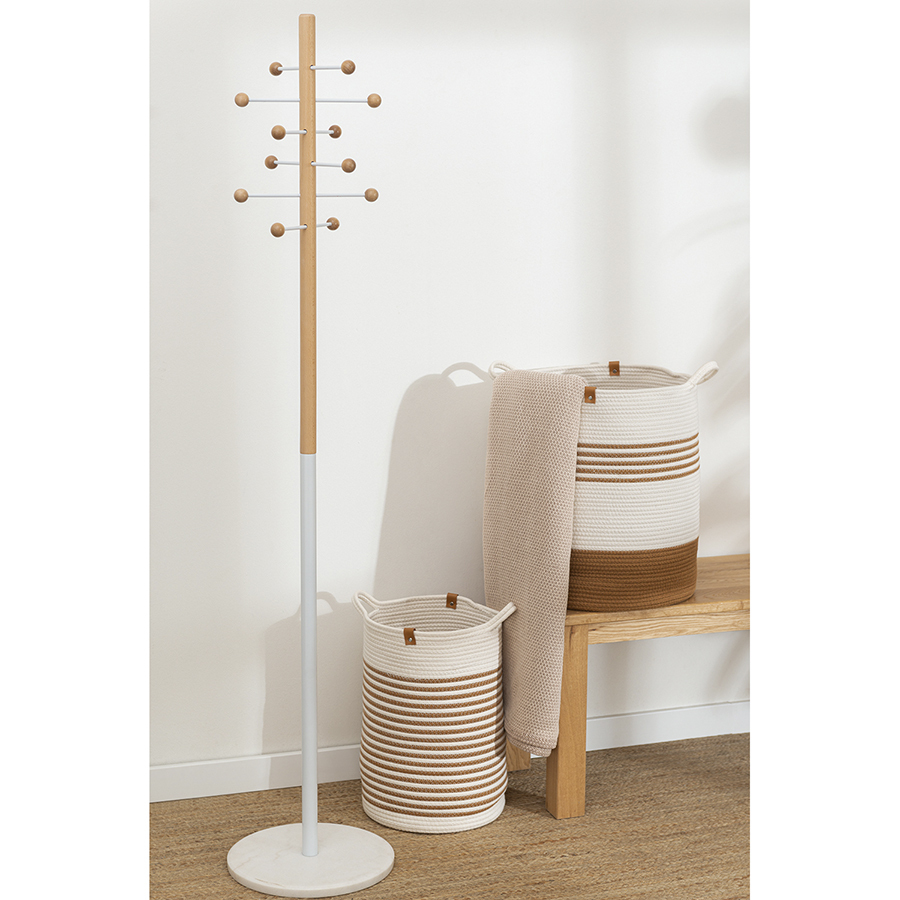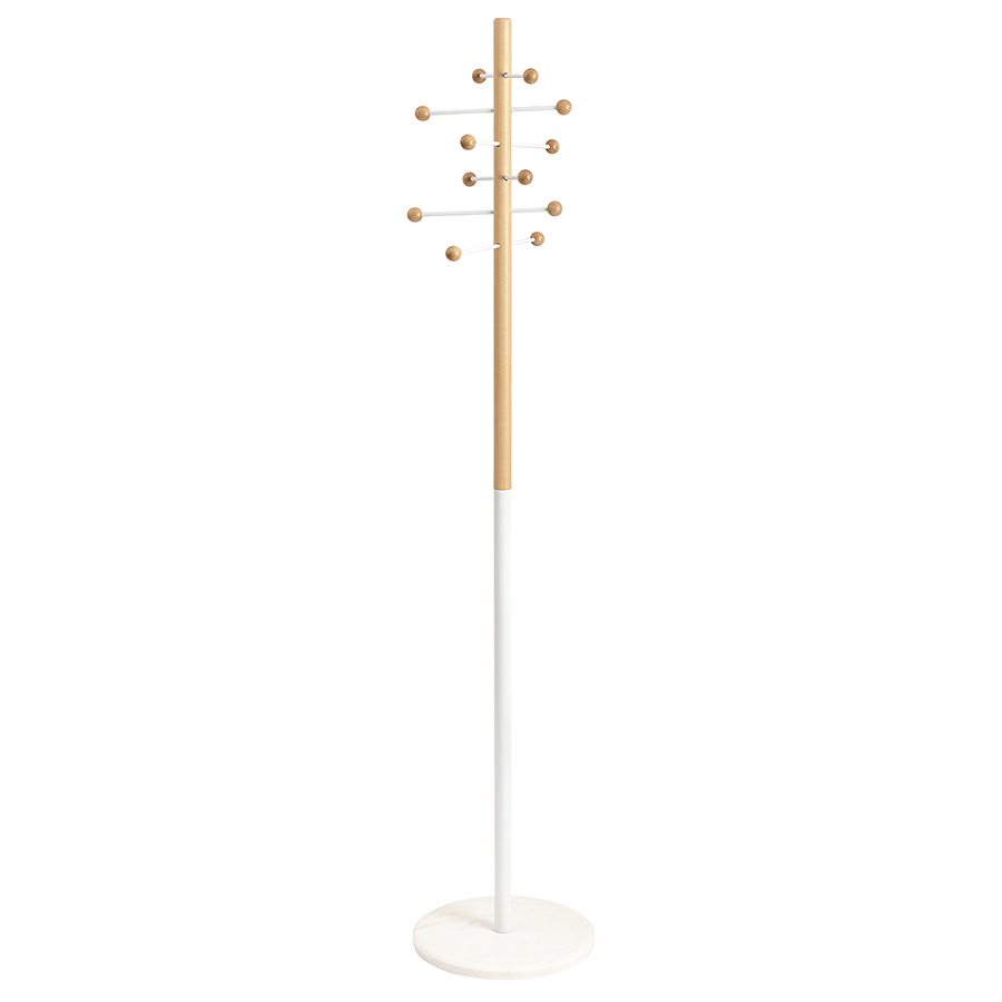 Вешалка напольная Marias – прекрасная альтернатива настенной конструкции. Благодаря удачному сочетанию материалов и нейтральному цветовому решению модель идеально подходит для интерьеров с различными вариантами оформления. За счет компактных размеров модель легко помещается даже в небольшой прихожей. Изделие имеет устойчивое основание из натурального мрамора, прочный металлический каркас и функциональную часть из дерева. Крючки для одежды и аксессуаров оснащены специальными заглушками обтекаемой формы. Каждый крючок выдерживает нагрузку до 5 кг, а вешалка в целом – не более 20 кг.