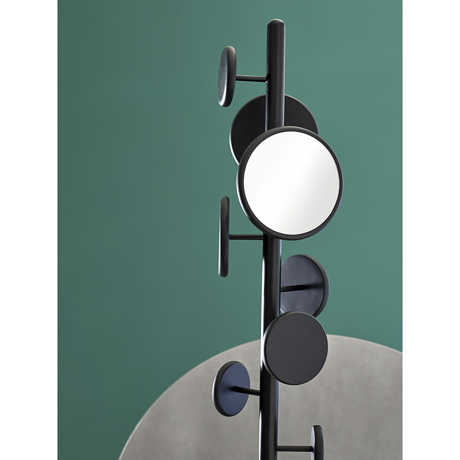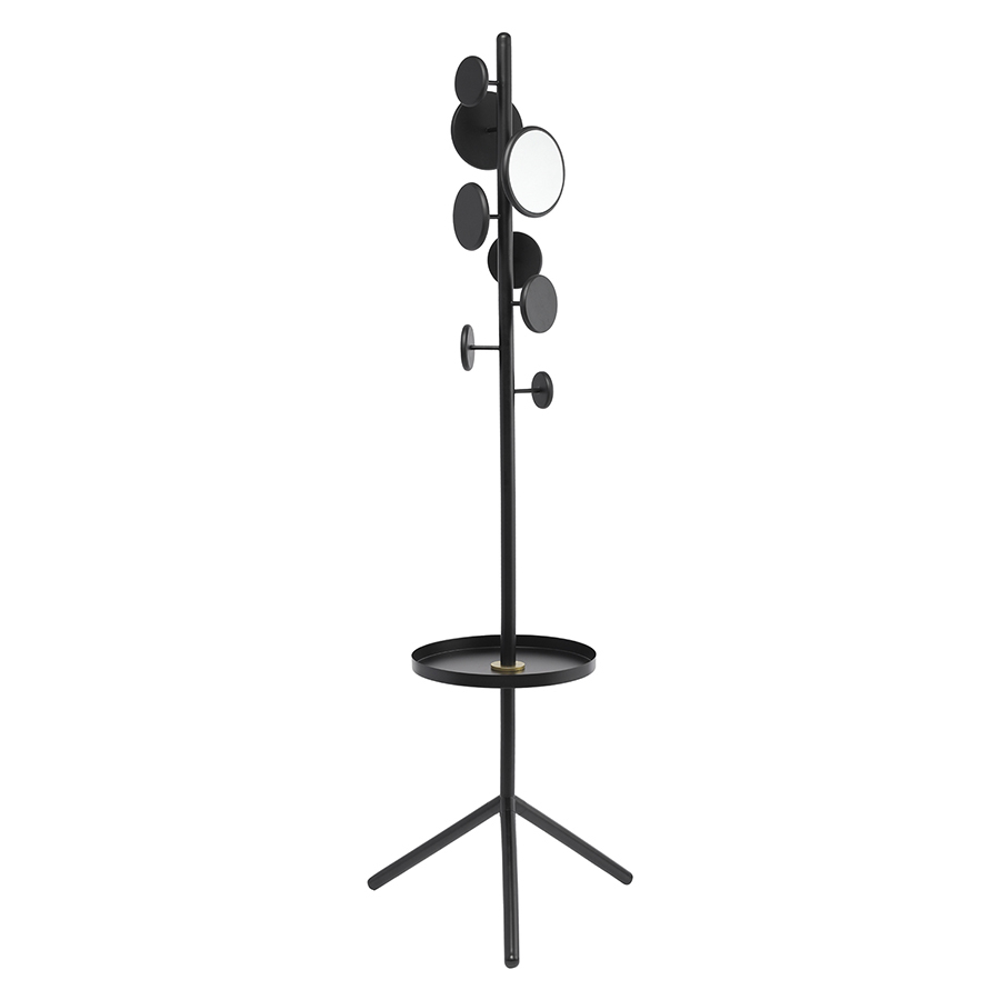 Материал: железо, стекло. Размеры: 56,5х56,5х181 см. Вес: 6,4 кг. Длина крючков: 7,2/7,5 см. Высота полки: 52,3 см. Цвет: черный.