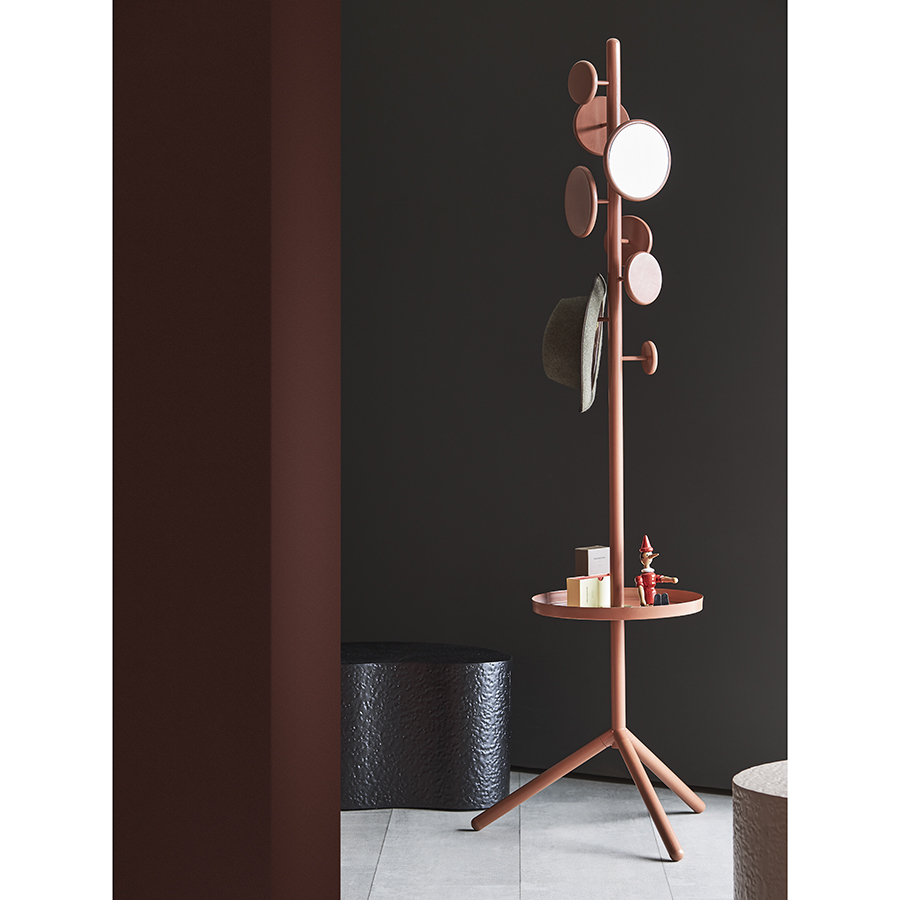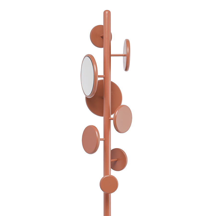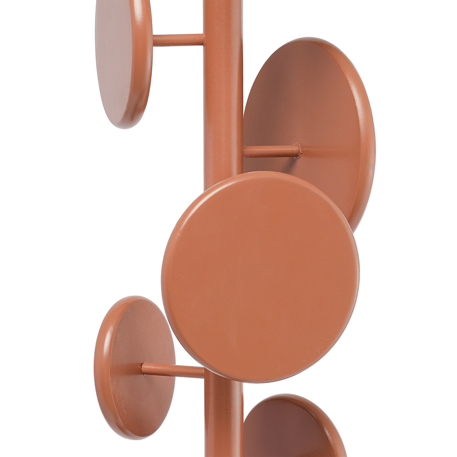 Материал: железо, стекло. Размеры: 56,5х56,5х181 см. Вес: 6,4 кг. Длина крючков: 7,2/7,5 см. Высота полки: 52,3 см. Цвет: терракотовый.