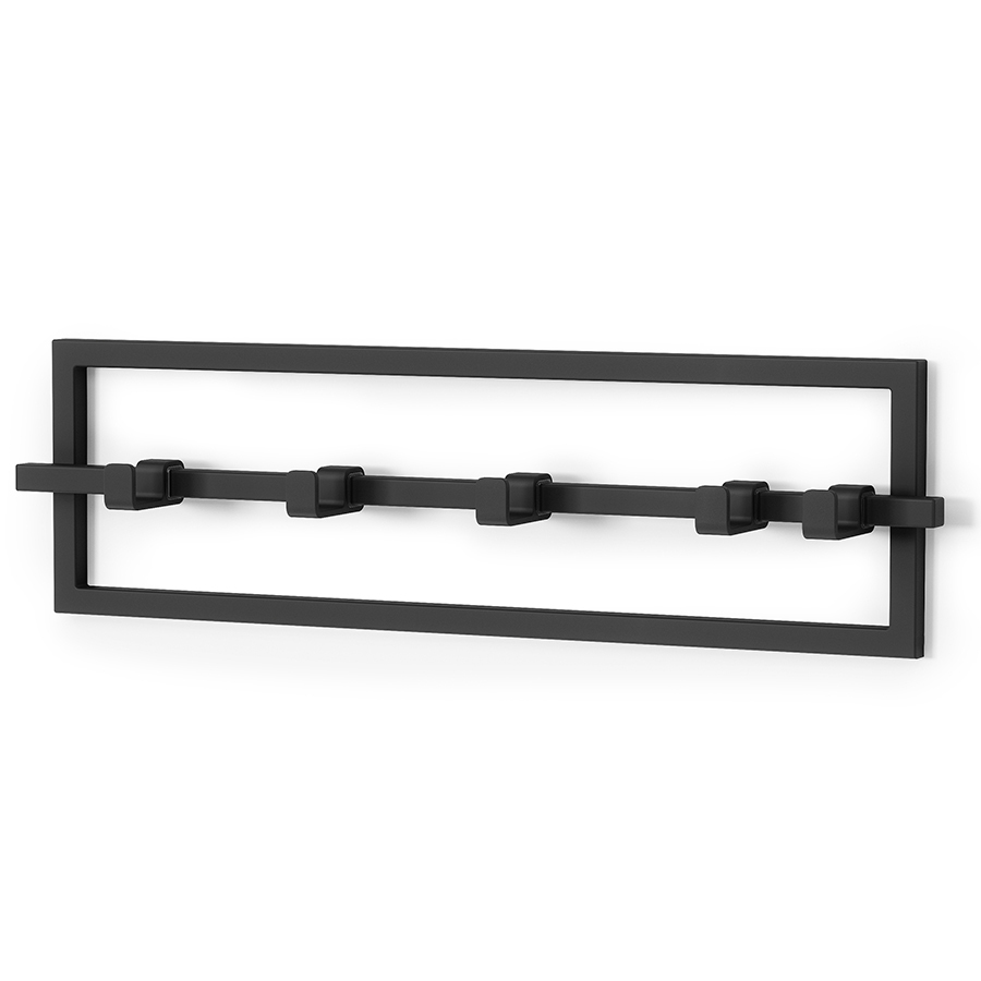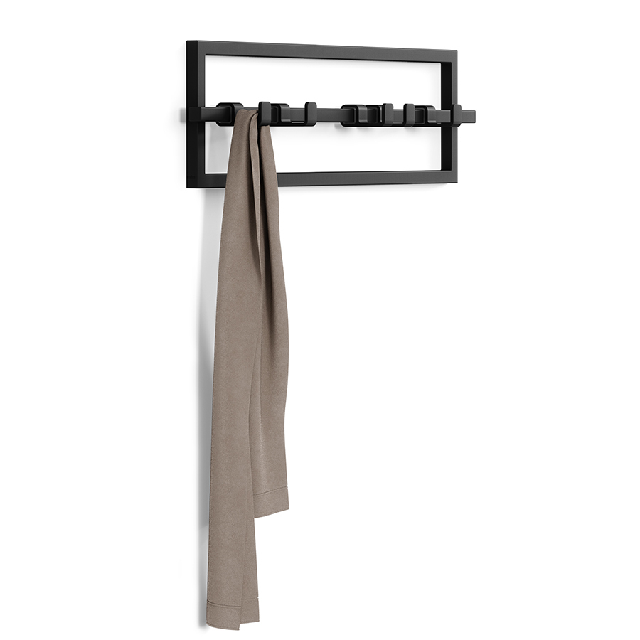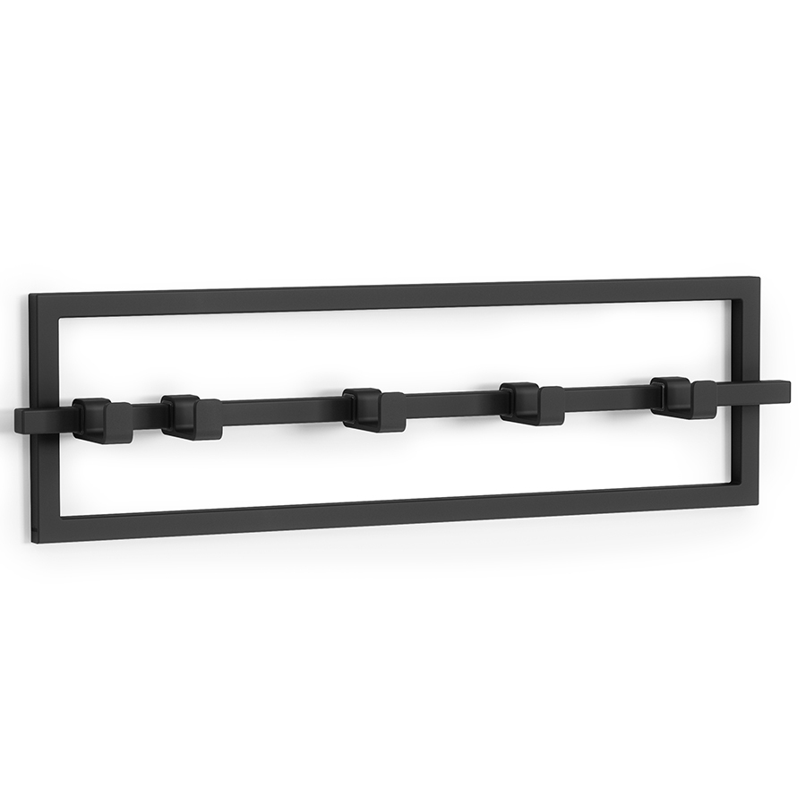 Вешалка включает 5 подвижных крючков, которые можно перемещать вдоль стержня. Каждый крючок выдерживает до 2,3 кг.