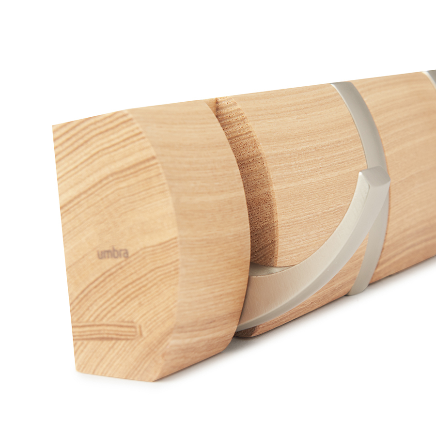 Настенная вешалка Flip станет изысканным украшением современного или классического интерьера дома. Особенность модели – это идеальное сочетание оригинального дизайна и компактных форм. Конструкция имеет 8 выдвижных крючков, именно поэтому вешалка отлично подойдет для небольших помещений. Мебель для прихожей снабжена гладким профилем и скрытой крепежной панелью, благодаря которой она без проблем монтируется на любой стене. Вешалка канадского бренда Umbra выполнена из высококачественной древесины, устойчивой к высоким нагрузкам и воздействию ультрафиолетовых лучей. К основанию изделия прикреплены прочные крючки, которые выдерживают нагрузку до 2,3 кг. Вешалка подойдет для хранения верхней одежды, сумок, зонтов и прочих аксессуаров всей семьи. Материал: дерево, металл. Размер: 81,5х6,7х4 см.