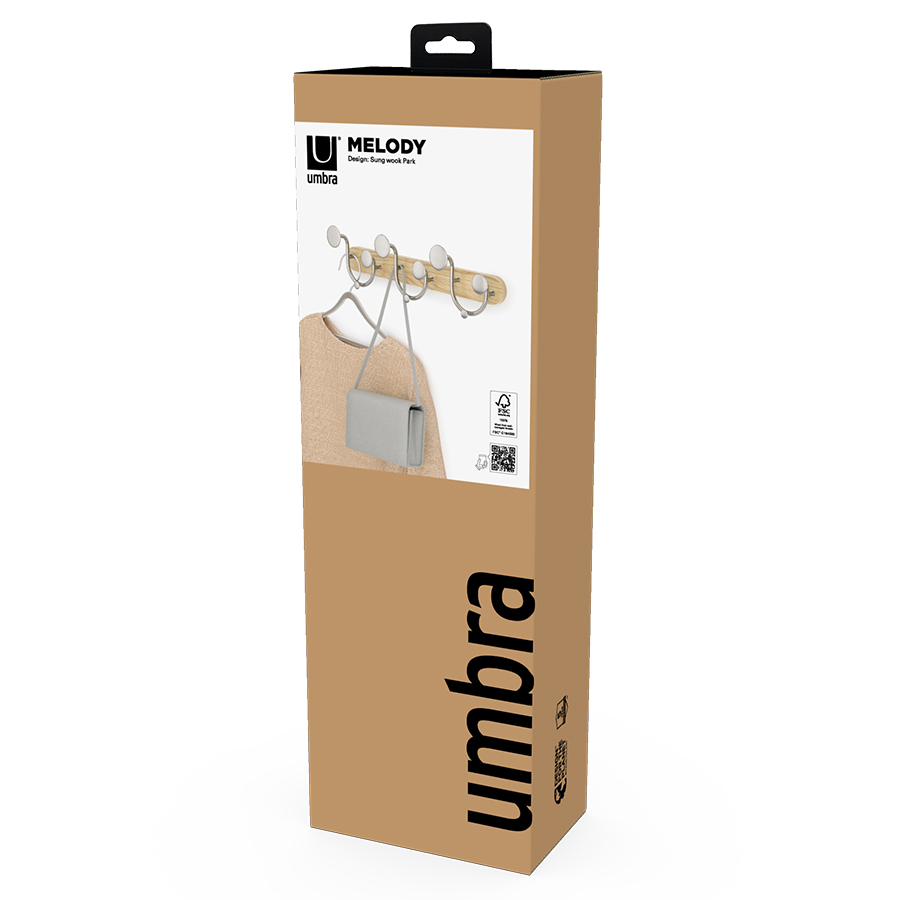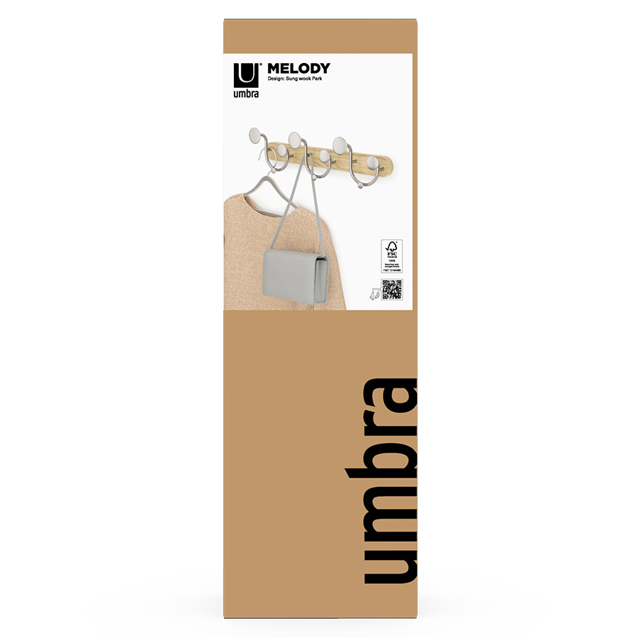 Вешалка настенная Melody идеально подойдет для компактного хранения вещей в любой комнате и станет стильным акцентом интерьера. Сочетание дерева и элементов из металла придает аксессуару современный, но в то же время естественный вид. Вешалка оснащена девятью крючками, на которых можно удобно размещать предметы одежды, головные уборы, шарфы, сумки и другие аксессуары.