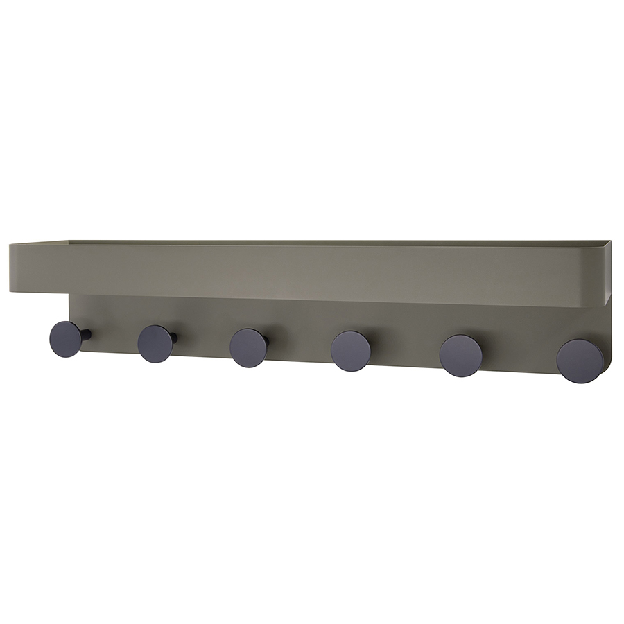 На вешалке расположены шесть прочных круглых крючков, с которых не соскальзывает одежда. На удобной полочке можно хранить перчатки, головные уборы, зонты и другие аксессуары. Вешалка легко крепится на саморезы. Изделие отлично сочетается с настенными зеркалами и тумбочками Remember. Размеры: 60 х 11,8 х 13 см.