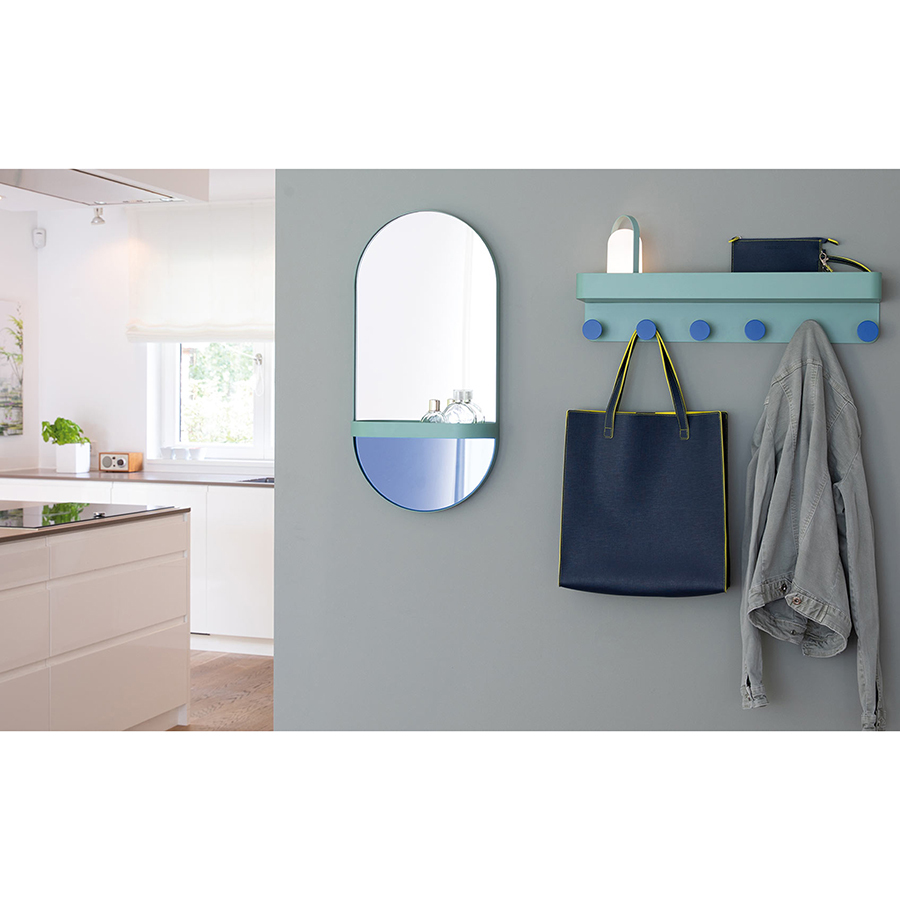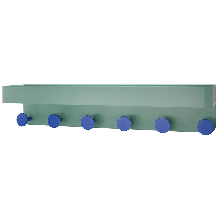 На вешалке расположены шесть прочных круглых крючков, с которых не соскальзывает одежда. На удобной полочке можно хранить перчатки, головные уборы, зонты и другие аксессуары. Вешалка легко крепится на саморезы. Изделие отлично сочетается с настенными зеркалами и тумбочками Remember. Размеры: 60 х 11,8 х 13 см.