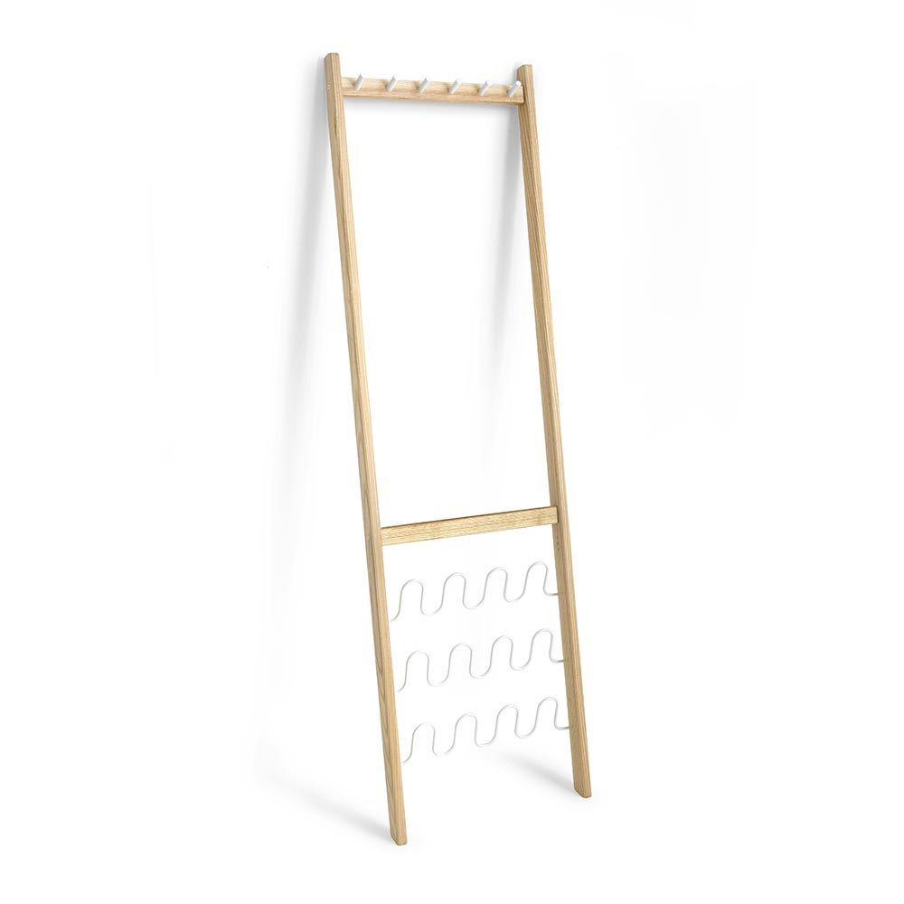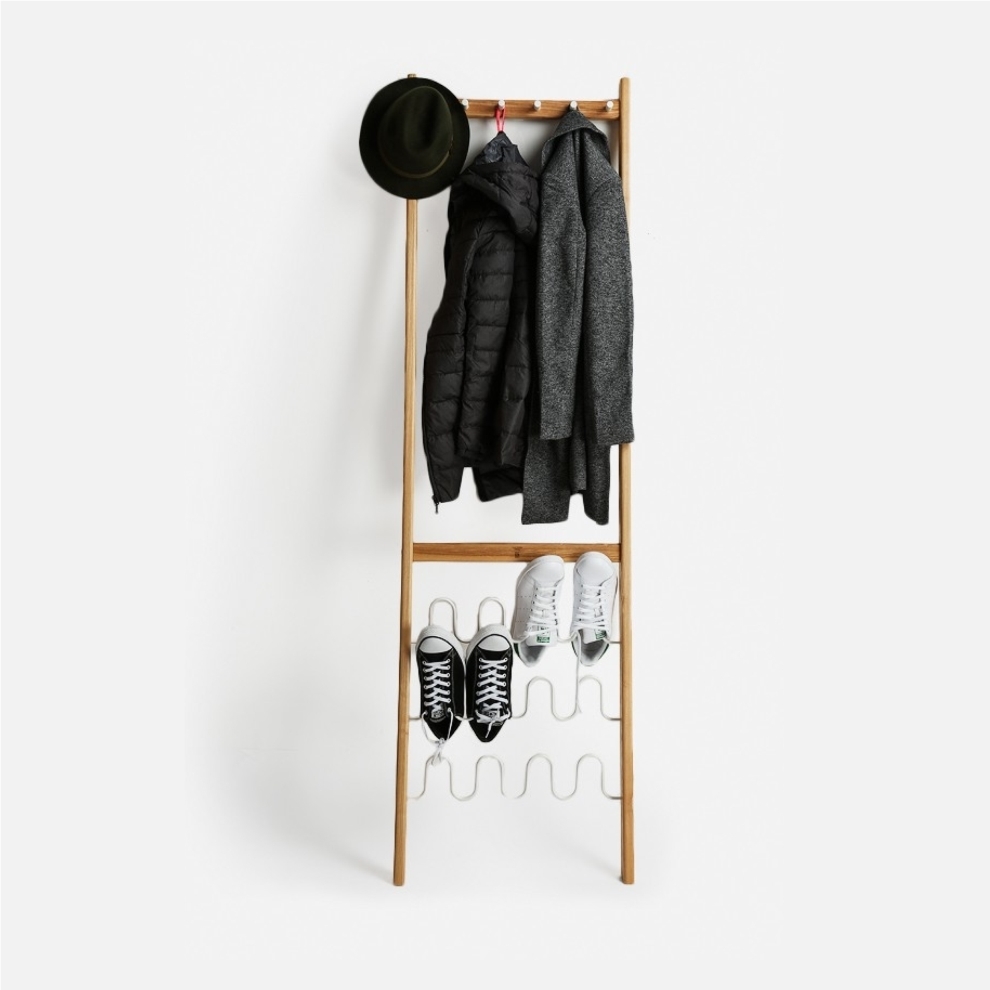 Такая вешалка пригодится всем, кто стремится к удобству и функциональности, но при этом уверен, что прихожая должна оставаться просторной, а также любителям принимать гостей и их многочисленную верхнюю одежду и обувь. Просто прислоните эту вешалку к стене и получите мгновенное решение: наверху крючки для одежды, внизу подставки для обуви, которая теперь не будет занимать много места. 6 крючков для одежды и подставки для 6 пар обуви позволяют использовать вешалку как в качестве основного места хранения в прихожей, так и дополнительного в спальне или детской. Дизайнер Wesley Chau