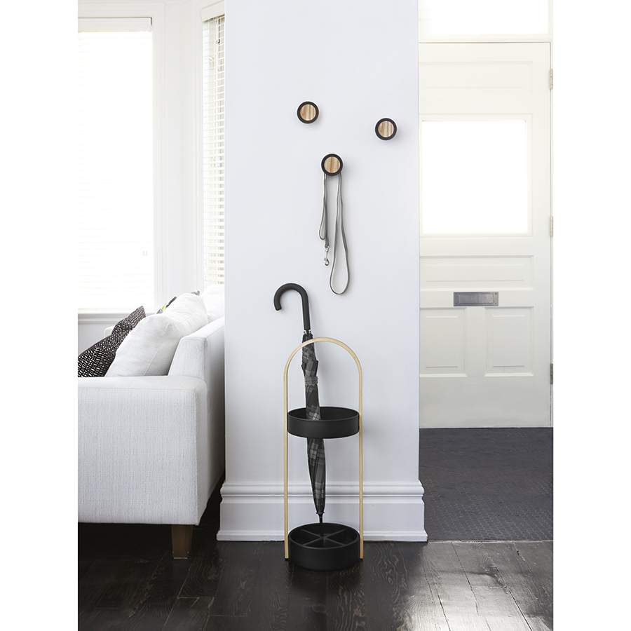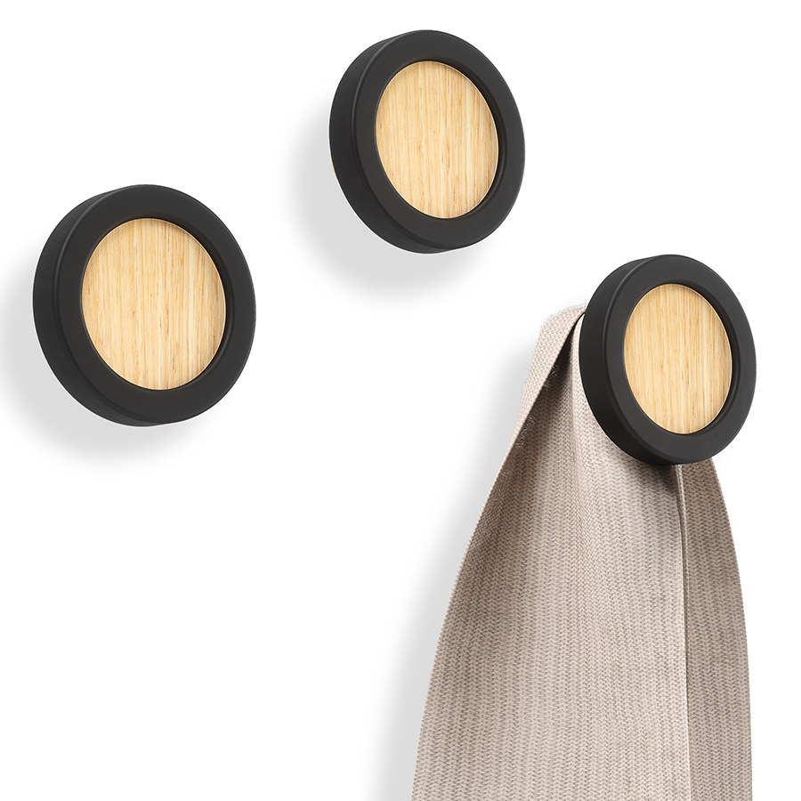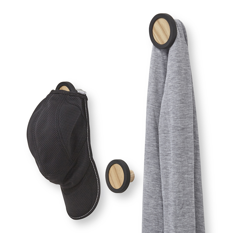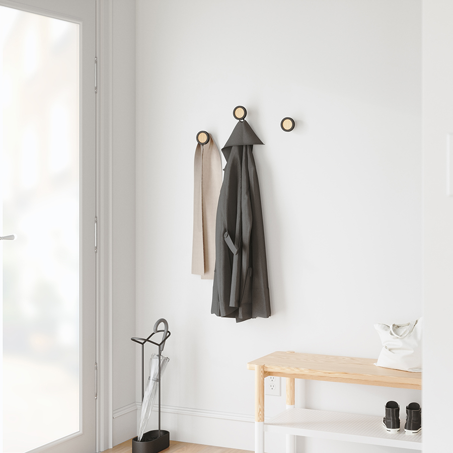 Стильные настенные крючки из коллекции Hub – оригинальное дополнение к интерьеру прихожей или ванной комнаты. Изделия отличаются оригинальным минималистичным дизайном и использованием натурального дерева. Крючки выполнены из ясеня и обрамлены прорезиненным ободком. Каждый элемент выдерживает нагрузку до 2,25 кг. В комплекте три крючка с необходимым крепежом. Дизайн: Jordan Murphy