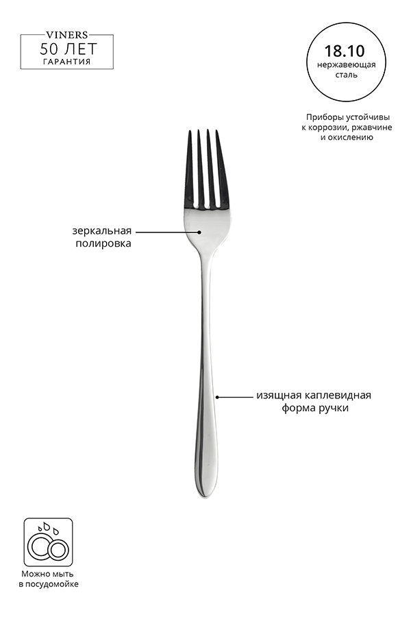 Столовая вилка необычной элегантной формы из коллекции Eden. Комбинируйте её с другими предметами коллекции для создания гармоничной и законченной композиции. Можно мыть в посудомоечной машине.