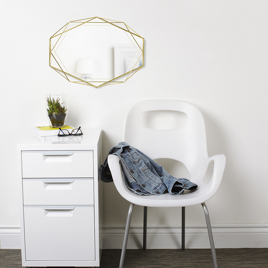 Пополнение семейства Prisma: изделия из стальной проволоки выглядят эффектно и футуристично, постоянно привлекая внимание гостей. Легкие, не собирающие пыль и легко перемещающиеся и трансформирующиеся украшения могут стать изюминкой интерьера. Помимо декора и рамок, бренд Umbra представляет зеркало: оно как будто имеет огранку из стальной проволоки и благодаря её геометрической форме выглядит как драгоценность. Оригинальное решение для любого интерьера.