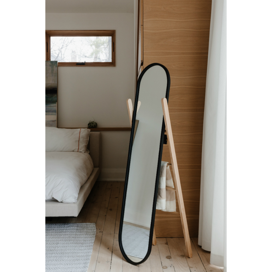 Гениальная идея для небольшого пространства — зеркало Hub позволяет увидеть себя с головы до ног и сэкономить при этом место в комнате. Функциональный объект 2-в-1 для прихожей, спальни или ванной комнаты, напоминающее мольберт художника. Зеркало защищено от механических повреждений плотной резиновой рамой, а на заднюю деревянную лестницу удобно вешать полотенца, небольшие аксессуары или одежду после трудного дня. Дизайнер Jordan Murphy