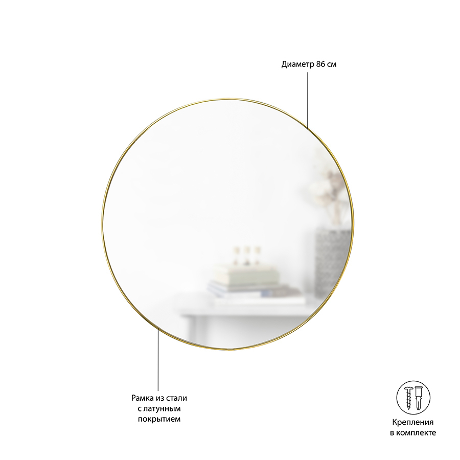 Большое круглое зеркало в минималистичном стиле визуально расширит пространство коридора или прихожей. Изделию присущи чистые линии и скругленные углы. Металлическая рама с декоративной отделкой цвета латуни — главная деталь этого эффектного зеркала, которая подчеркнет индивидуальный стиль интерьера. Экономия пространства и функциональность – вот главная идея, которой вдохновлялся дизайнер, создавая настенное зеркало для коллекции Hubba. Дизайн: Paul Rowan