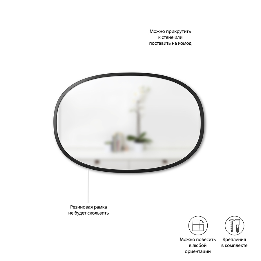 Овальное зеркало в минималистичном стиле визуально расширит пространство. Рама из чёрного каучука — главная деталь этого эффектного зеркала, которая подчеркнет индивидуальный стиль интерьера. Сочетается с другими предметами из коллекции HUB. Диаметр: 91.44 x 61 см. Экономия пространства и функциональность – вот главная идея, которой вдохновлялись дизайнеры, создавая эти зеркала HUB. Ей присущи чистые линии и скругленные углы. В коллекции представлены практичные аксессуары для дома и предметы декора. Дизайнер: Paul Rowan