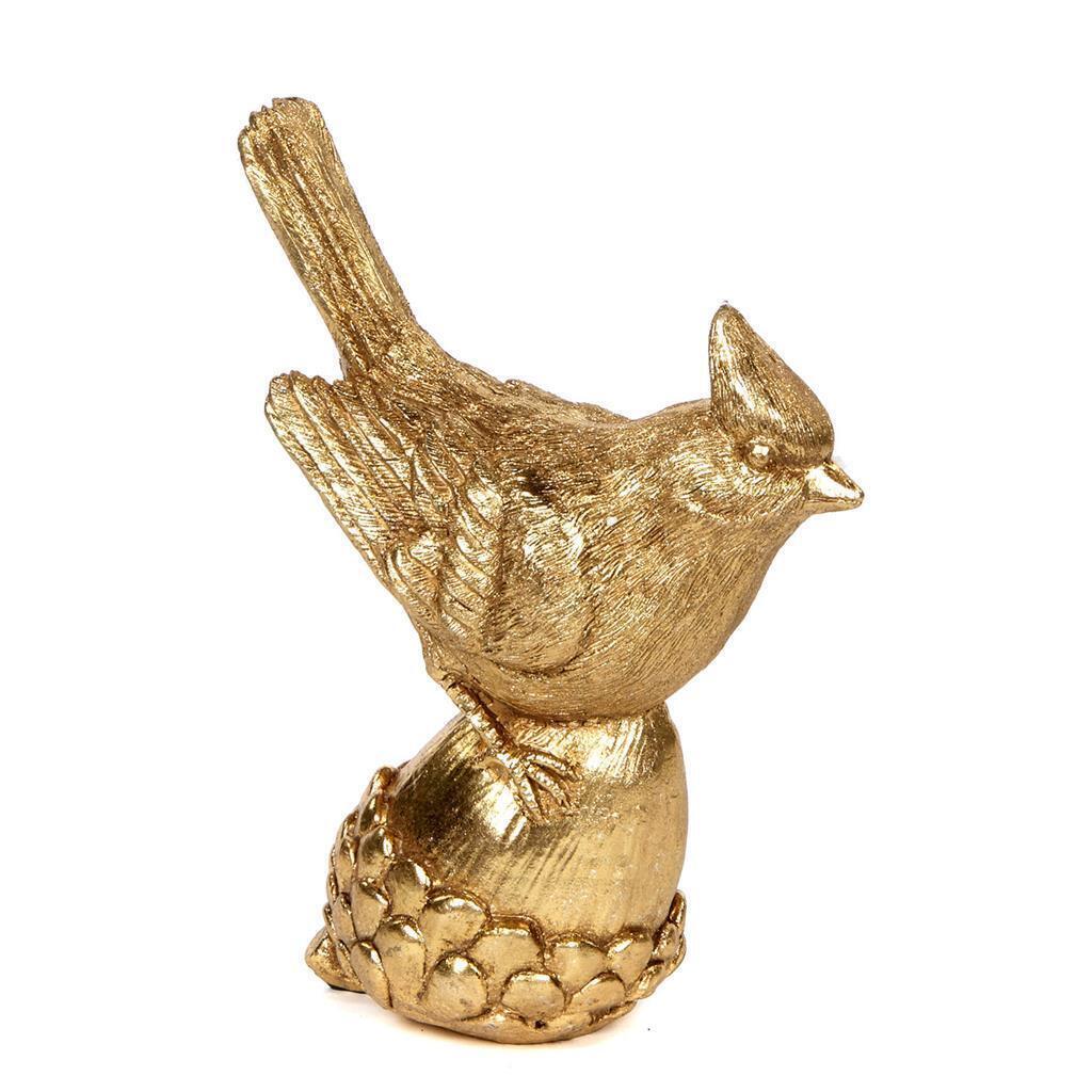 Золотая птичка поражает своей детализацией - глазки, пёрышки и аккуратный хвостик - ручная работа видна сразу! Фигурка изображает лесную птичку, присевшую на жёлудь, она станет богатым украшением для Вашей композиции не только в Новый год.