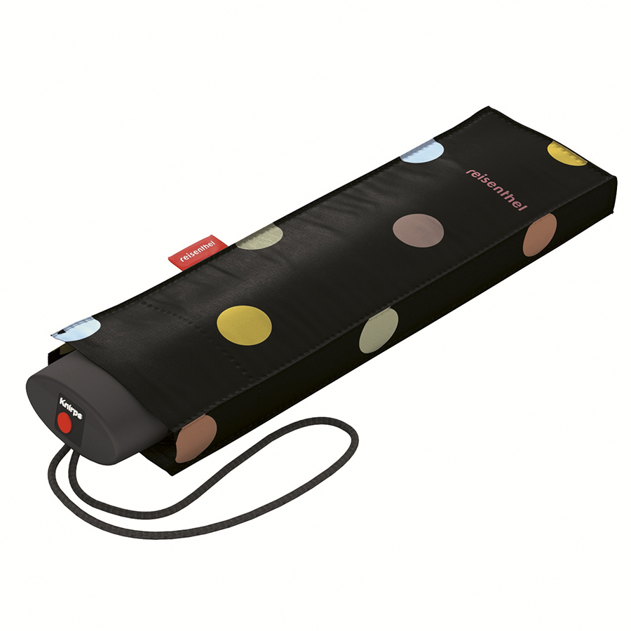 Диаметр купола: 97 см. Зонт плоской формы поместится в любую сумку. Все модели проходят испытания в аэродинамической трубе при скорости ветра до 100 км/час. В случае, если зонт вывернется в обратную сторону, конструкция не повредится. Эргономичная ручка помещается в ладони и не выскальзывает благодаря ремешку, который надевается на запястье. Для того, чтобы сложить зонт, следует нажать на красную кнопку в верхней части. Зонт помещается в защитный чехол для компактного хранения. Прочный, водоотталкивающий полиэстер выполнен из переработанного пластика PET.