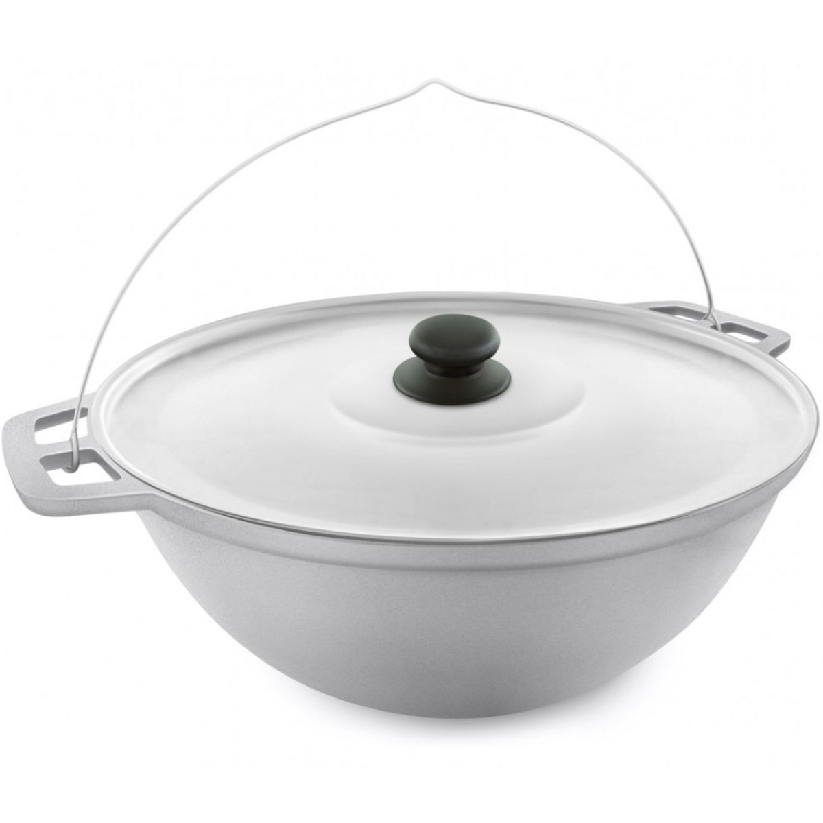 Казан глубокий "Походный" из непокрытого алюминия идеален для туризма. Съемная оцинкованная дужка позволяет свободно перемещать и размещать казан над костром. Казан подходит для различных типов приготовления на открытом огне: в нем можно жарить, тушить, томить, варить. Долговечен и практичен в эксплуатации благодаря литому алюминиевому корпусу. Такой корпус не подвержен деформации и обеспечивает равномерный нагрев.