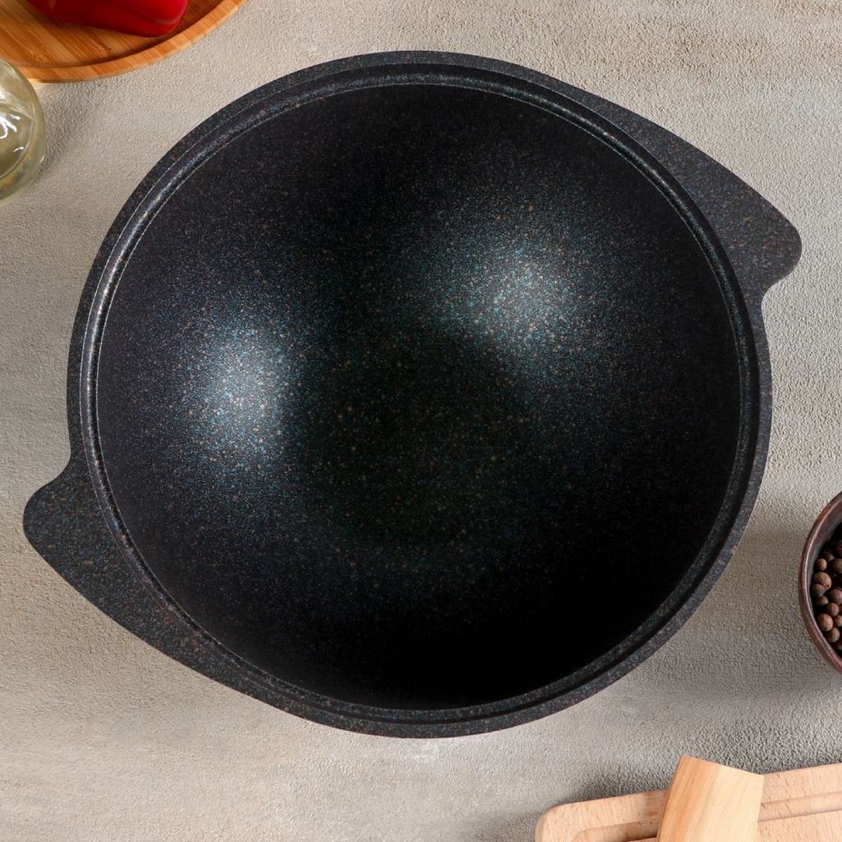 значительная толщина стенок и дна исключает деформацию корпуса сковороды, гарантирует ее долговечность, обеспечивает необходимую прочность покрытия;