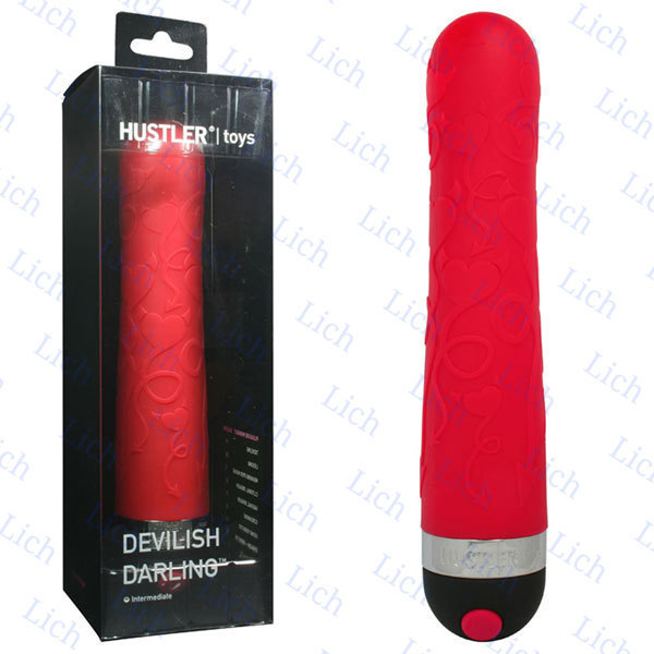 Чертовски классно! Именно так вам будет с этим алым вибратором, тельце которого оплетают сердечки с рожками и хвостиками. Выбирайте любой из пяти режимов вибрации и скорее погружайте его в себя! Мощная стимуляция и непревзойденное скольжение секс-игрушки заставят вас испытать сильнейший оргазм. Если вам захотелось ласки в ванной, что ж… Возьмите вибратор с собой и играйтесь с ним сколь угодно долго – он полностью водонепроницаем! Длина 18 см, диаметр 4 см.