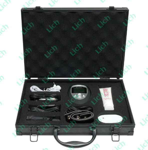 Создан специально для того, чтобы по-настоящему зарядить Вашу сексуальную жизнь. Это изобретение бросает вызов ограничениям и выводит на новый уровень взаимосвязь боли и наслаждения. Набор включает все необходимое для того, чтобы Вы и Ваш партнер могли исследовать границы удовольствия и подходит даже для начинающих. Благодаря диалоговому дисплею, отображающему действие и уровень интенсивности каждого импульса, Вы сможете выбрать один из трех режимов пульсации и ста комбинаций стимулирования. Закрепив самоклеющиеся подушечки на различных частях тела Вашего партнера, всколыхните его ощущения при помощи созданных Вами импульсных волн. Все что Вам нужно, - это выбрать одну из пяти зон тела для стимуляции и нажать кнопку для начала сеанса шоковой терапии. В комплекте: насадка на фаллос анальная пробка клипсы на соски маска на глаза. Упакован в стильный стальной чемоданчик.