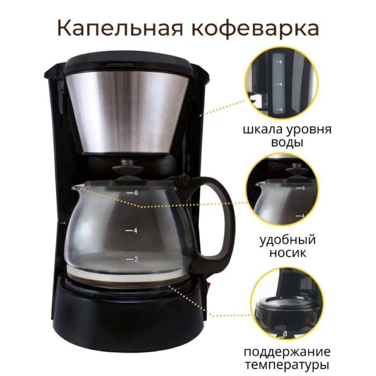 Кофеварка электр, капельная, пластик, 0.75 л, TDM, Гефест-1, 650 Вт, 6 порций, съемный фильтр, подде