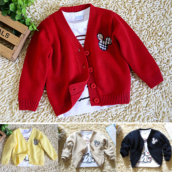 Кардиган детский однотонный с аппликацией силуэта Микки Мауса
