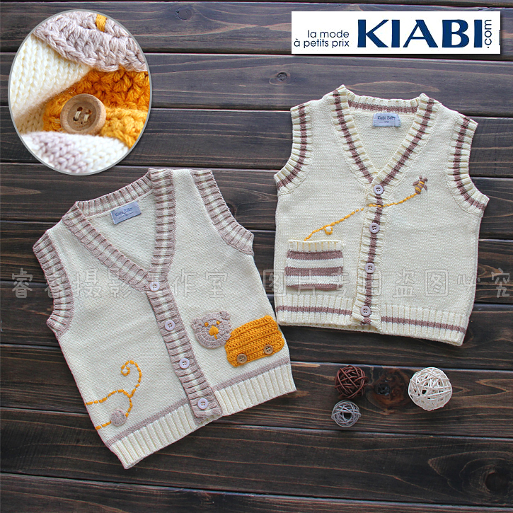 Жилет детский на пуговицах с карманом или вязаным медведем