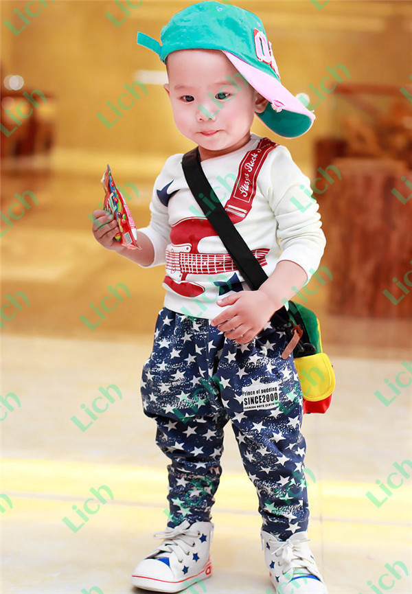 Комплект: лонгслив с принтом гитары и брюки с принтами звезд