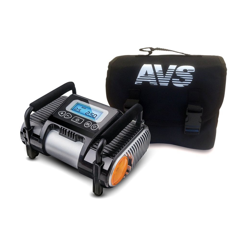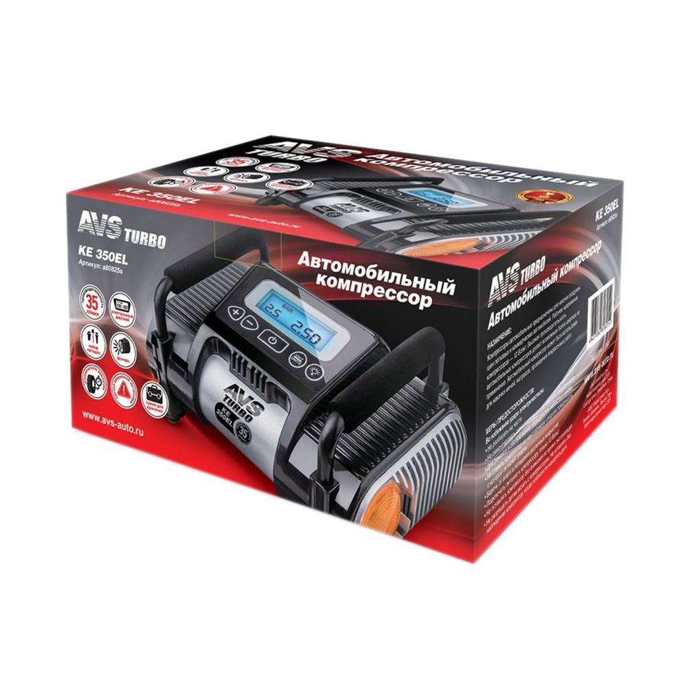 Снабжен множеством функций. Модель AVS Turbo KE 350EL оборудована прикуривателем и фонариком. Присутвует функция самоотключения, путем установки ограничения давления. При достижении указанного порога, нанос прекратит свою работу. В комплект оборудования входят основные переходники и насадки для разных функций использования компрессора.