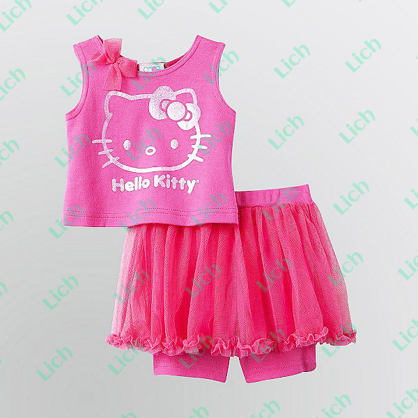 Костюм детский из майки и юбки-шорт с принтом Hello Kitty