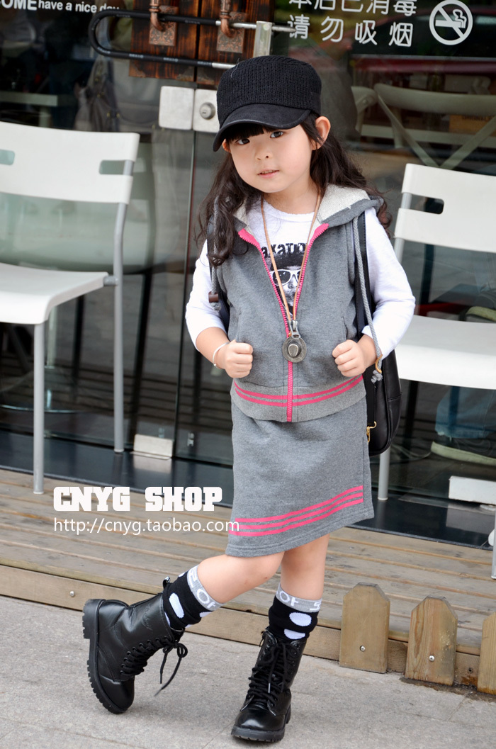 Костюм: жилет на молнии с капюшоном и юбка с яркими полосками