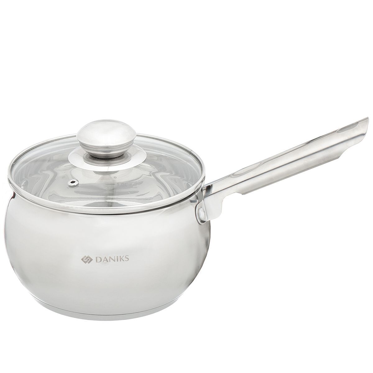 Ковшик Daniks выполнен из высококачественной нержавеющей стали. Крышка из прозрачного стекла позволяют контролировать процесс приготовления пищи. Металлическая ручка удобна, прочна и не нагревается при использовании посуды.