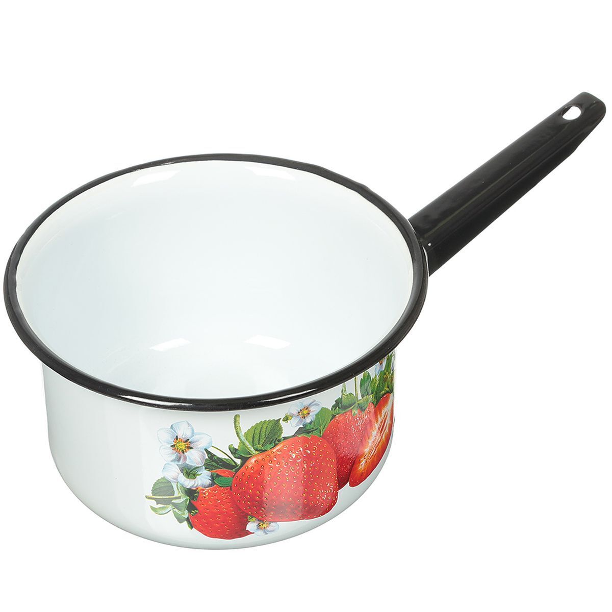 Ковш СтальЭмаль "Ягоды" изготовлен из высококачественной стали с эмалированным покрытием. Пища не пригорает и не прилипает к стенкам и дну посуды. Изделие декорировано изображением цветов и земляники.