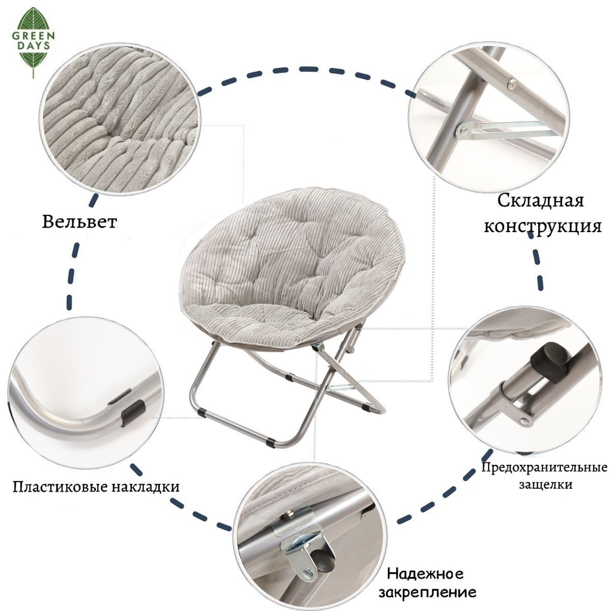 Помимо домашнего использования, кресло станет отличным местом времяпровождения на открытом воздухе. Благодаря легкой транспортировке и удобному исполнению, кресла Green Days можно использовать не только для пикника, но и для отдыха на даче, на рыбалке и в путешествиях.