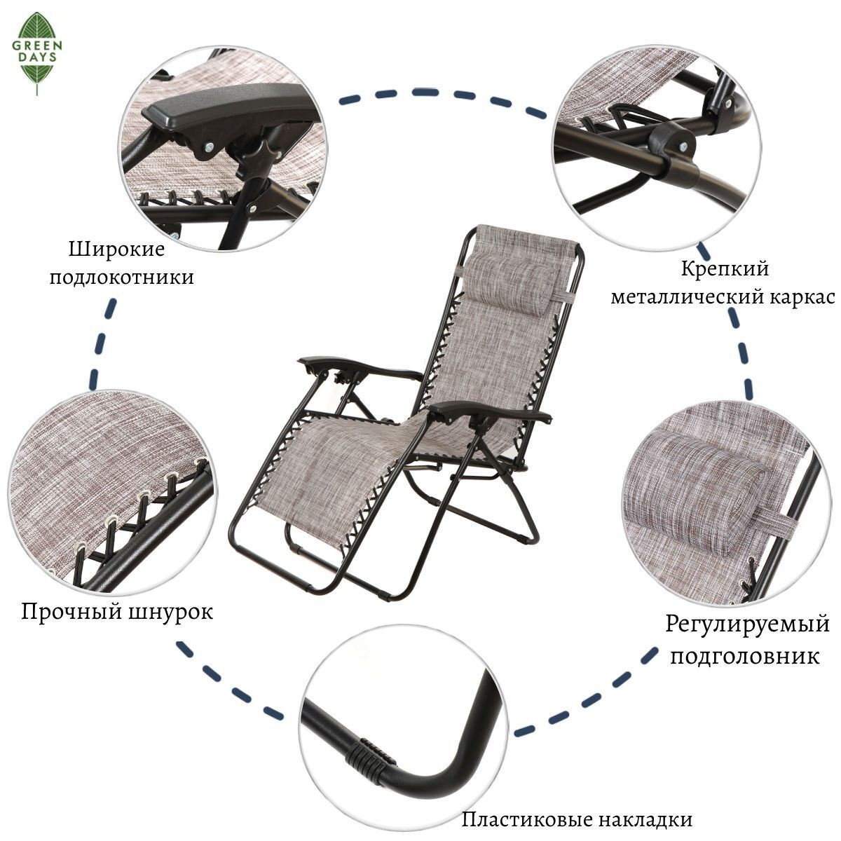 Благодаря легкой транспортировке и удобному исполнению, шезлонги Green Days идеально подойдут в качестве кресел для отдыха во дворе, кемпинга или принятия солнечных ванн на пляже. Также лежак можно использовать дома. Вес шезлонга составляет всего 7 кг.