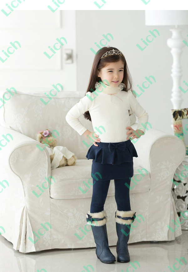 Леггинсы детские с юбкой, баской и бантом
