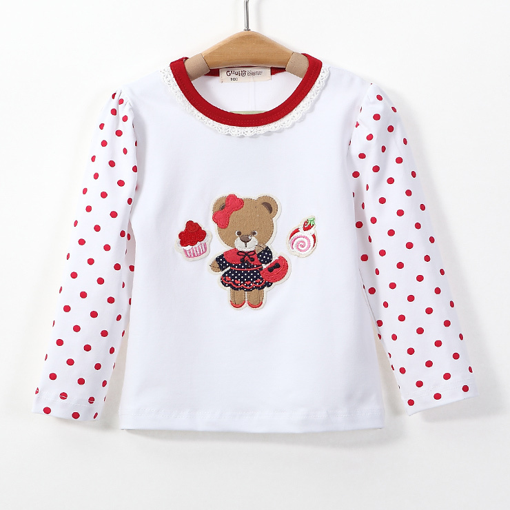Лонгслив с рукавами в горох и аппликацией медвежонка