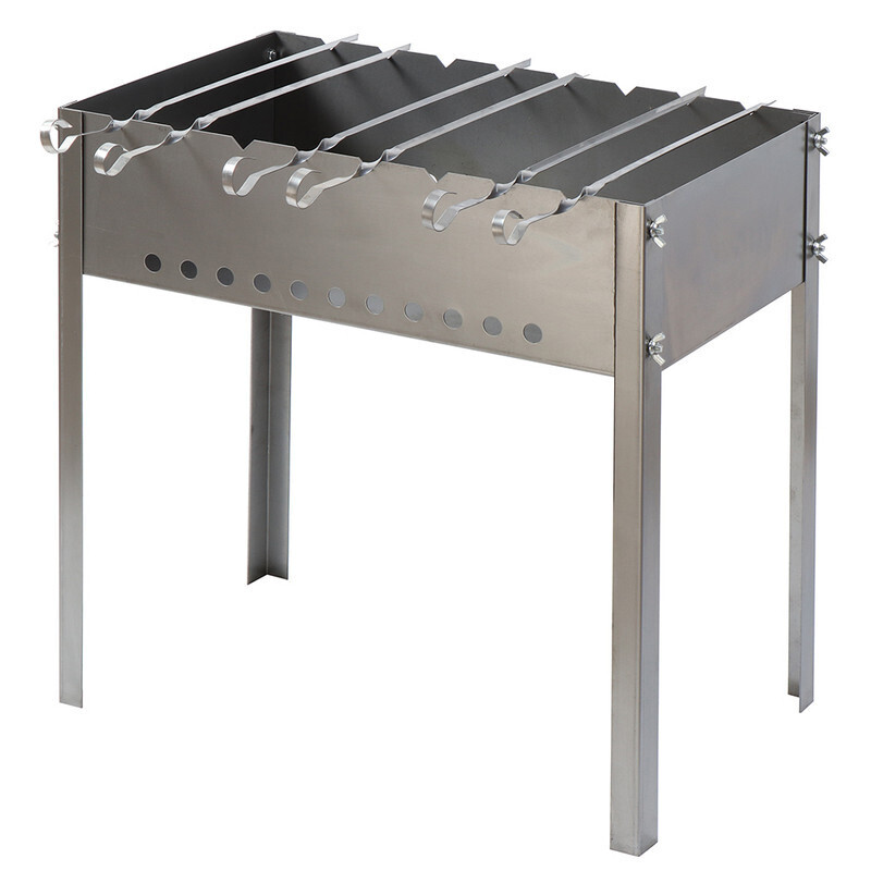 Мангал предназначен для приготовления пищи на открытом огне или углях. Мангал имеет разборную конструкцию, мобилен и удобен в использовании. В комплекте 6 шампуров.