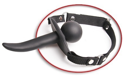 Ласкать ртом? Кхм… Сделать это можно двумя способами – один слаще другого. Можно воспользоваться языком и губами, заставляя плоть партнёра напрягаться. Или – этим кляпом с изогнутым фаллосом! Зафиксировав его на голове, вы сможете проникать в вагину партнёрши или анус партнёра, чувственно стимулируя точку G или простату. Длина фаллоса: 11 см