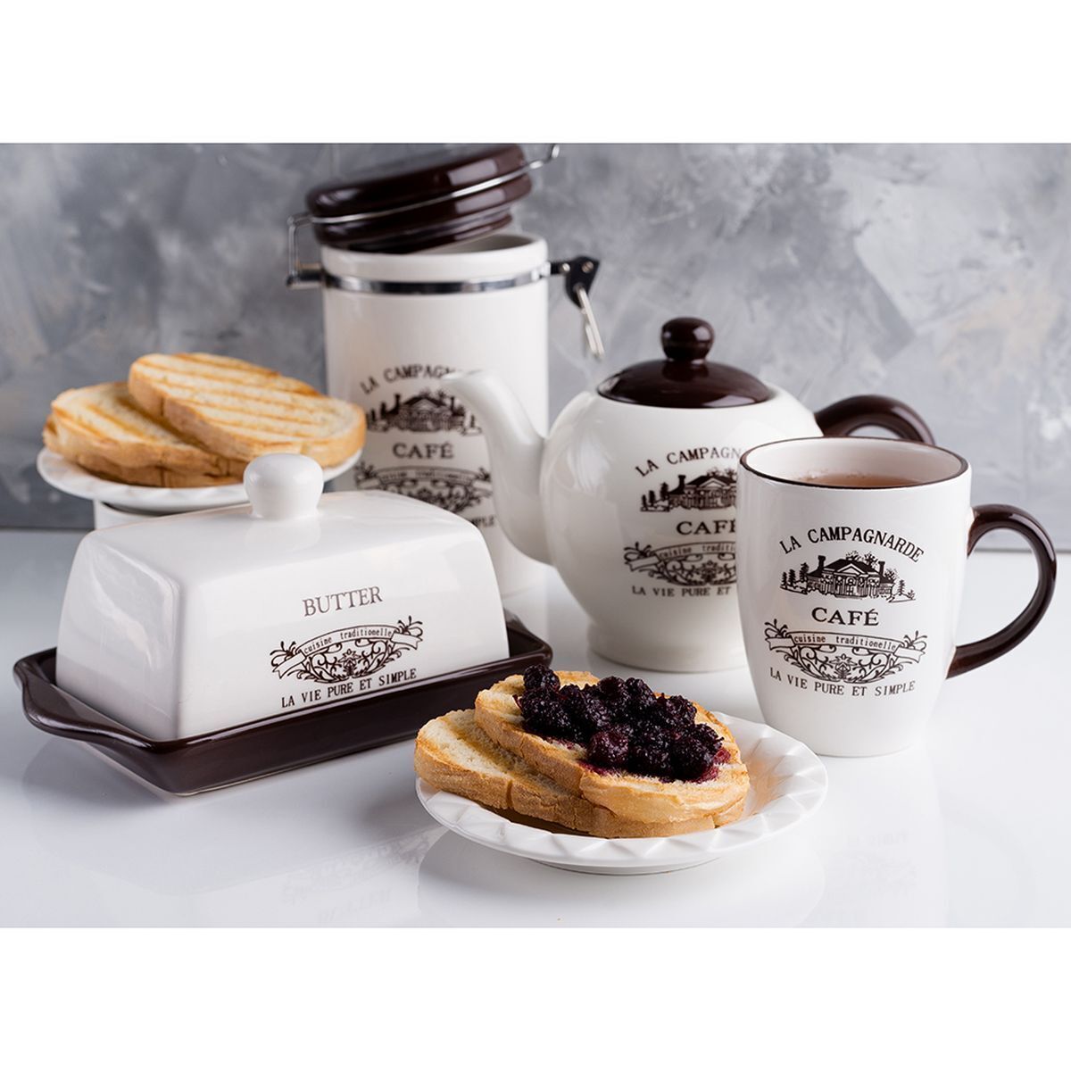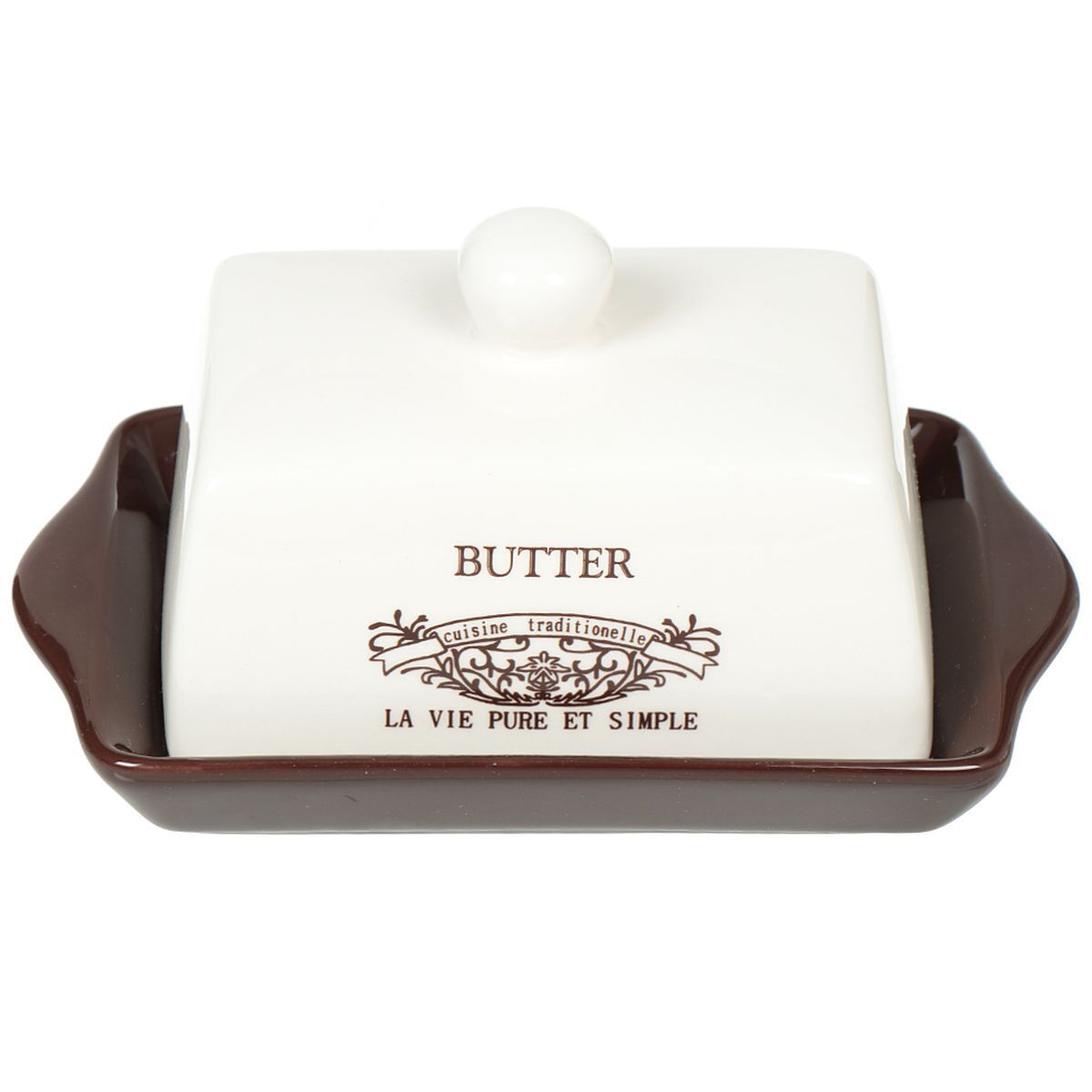 Масленка "Кафе", изготовленная из керамики, предназначена для красивой сервировки и хранения масла. Она состоит из крышки с удобной ручкой и подноса. Масло в ней долго остается свежим, а при хранении в холодильнике не впитывает посторонние запахи. Гладкая поверхность обеспечивает легкую чистку. Можно мыть в посудомоечной машине.