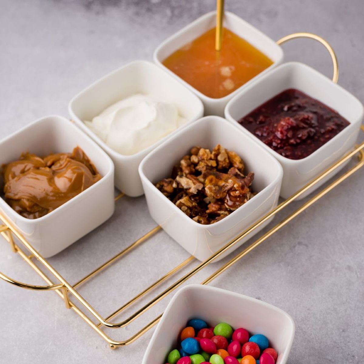 Набор для сервировки выполнен из высококачественных материалов и состоит из 7 предметов - 6 керамических соусников и подставка. Набор для сервировки прекрасно подходит для подачи сыра и фруктов и благодаря необычному дизайну украсит любой стол.