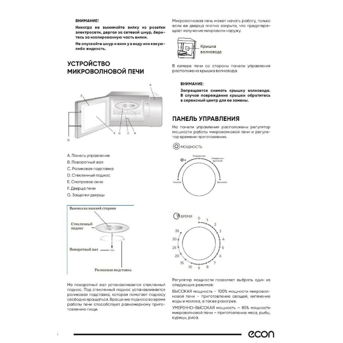 Микроволновая печь ECON оригинального дизайна не оставит равнодушным любителей всего современного и прогрессивного. СВЧ печь ECON ECO-2038M white с механическим управлением и подсветкой имеет полезный объем камеры 20 литров, оптимальный для семьи до 4 человек. Она удобна и проста в использовании. Корпус выполнен из рифленого металла белого цвета с внутренним покрытием из жаропрочной эмали. Смотровое окно имеет необычную овальную форму, что придает нашей печи экстравагантный вид. Выступающий элемент в виде волны используется для открытия дверцы.