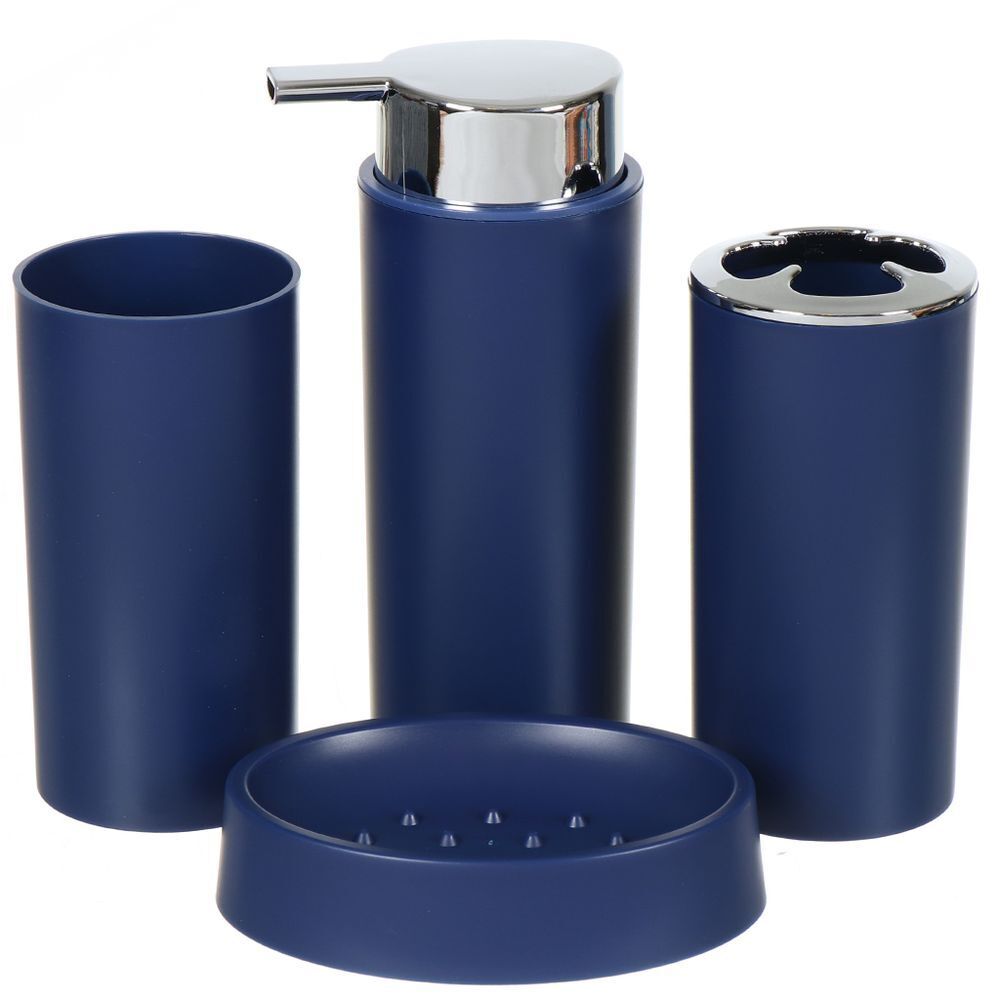 Набор для ванной 4 пр, Аника, син, пластик, стак,подс д/зуб щет,дозат д/мыла,мыл-ца, Y9-079