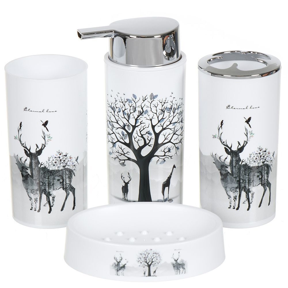 Приятно, когда все предметы в доме находятся в гармонии друг с другом, поэтому комплект аксессуаров для ванных комнат выполнен в едином дизайне. Обтекаемые формы комплекта и приятные оттенки, несомненно, придадут уют помещению и легко впишутся в любые интерьерные решения. Продуманная комплектация (мыльница для мыла любой формы, диспенсер для жидкостей, стаканчик для ванной комнаты и подставка под зубные принадлежности) сделает посещение ванной максимально комфортным.