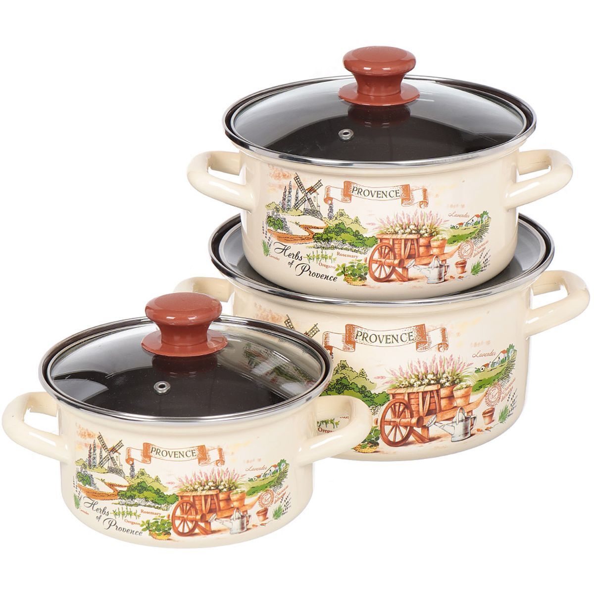 «Набор эмалированной посуды 6 предметов, кастрюли 1.5,2.3,3 л, Керченский металлургический завод, Травы Прованса-1-Экстра» можно купить мелким, средним и крупным оптом по привлекательным ценам благодаря тому, что мы сотрудничаем с российскими и международными производителями напрямую, без посредников.