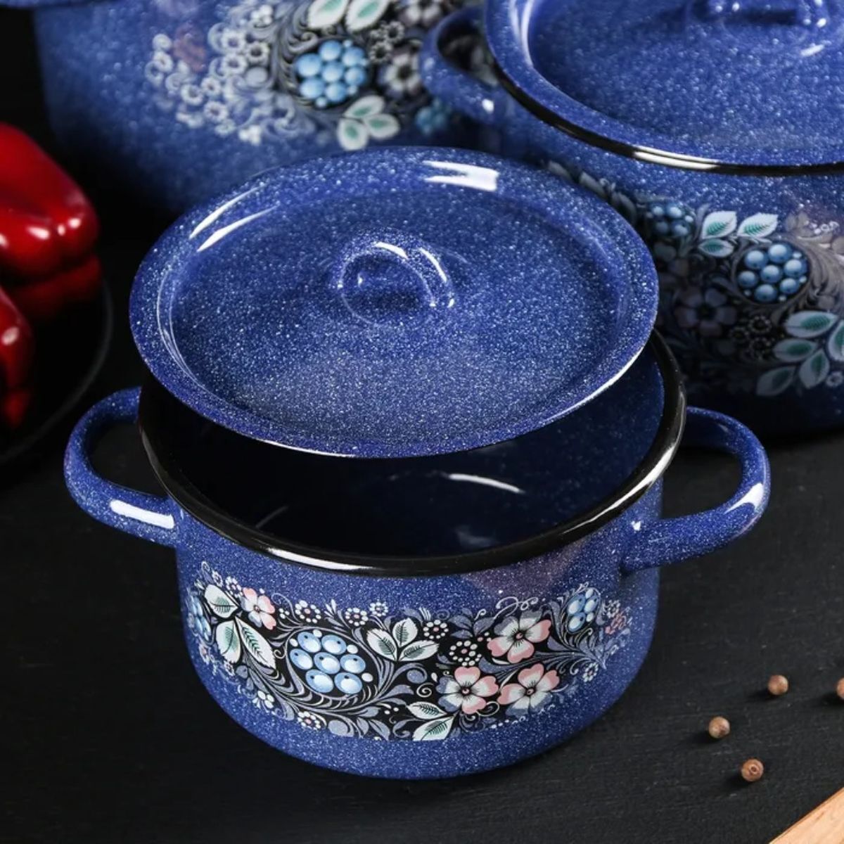 Посуда Стальэмаль рассчитана на длительный срок эксплуатации. Она подходит для любых видов плит и посудомоечных машин. Прочный корпус из холоднокатаного стального проката гарантирует эффективную тепловую обработку пищи. Благодаря двойному слою эмалевого покрытия исключается проникновение в пищу оксидов металла. Покрытие инертно и устойчиво к пищевым кислотам, не вступает во взаимодействие с продуктами и не искажает их вкусовые качества.